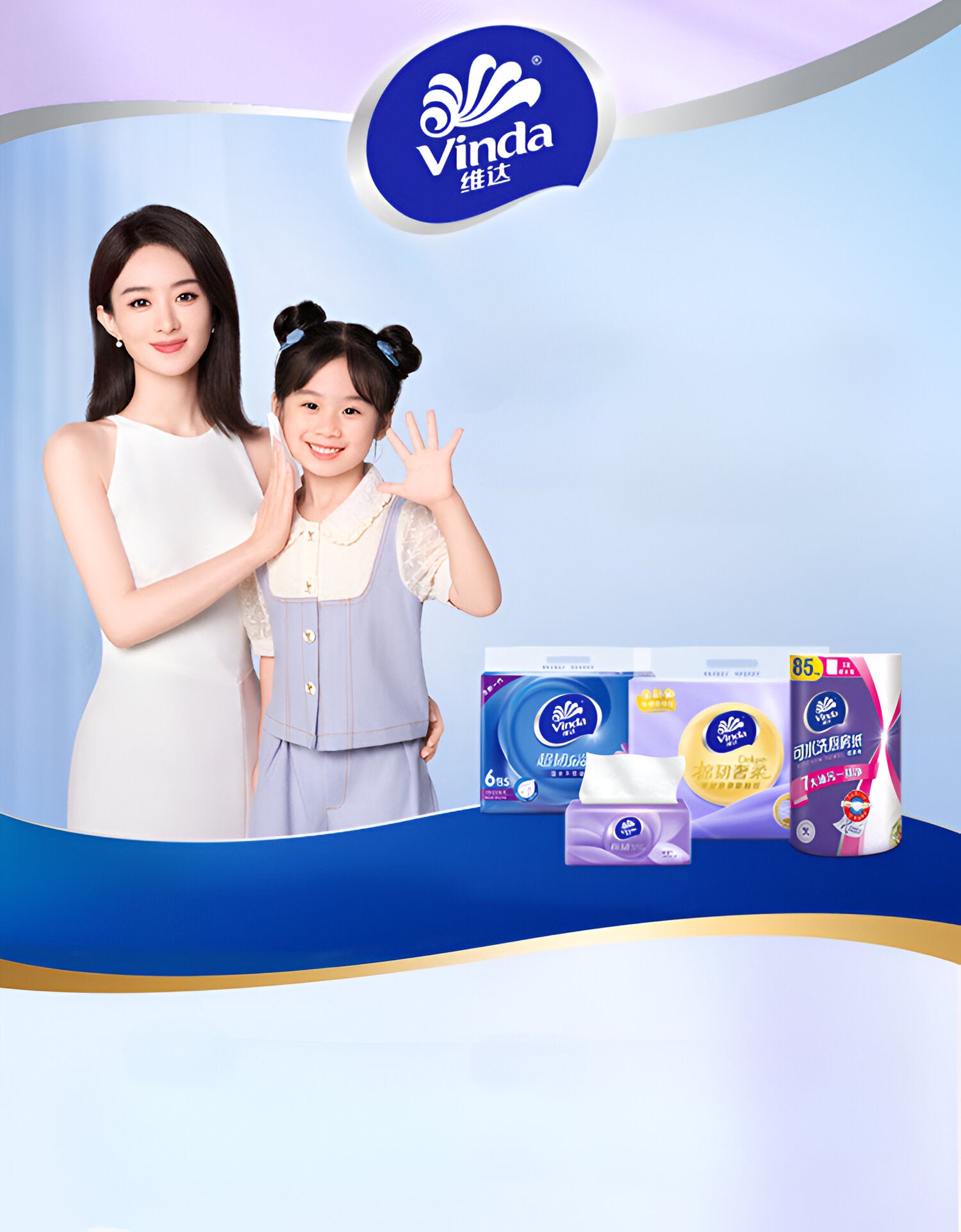 Tissue-VC 2321 Vinda 100 sheets3ply wide 155mm export 4D embossment soft pack facial tissue 5pack/bundel 10bundels/cartoon